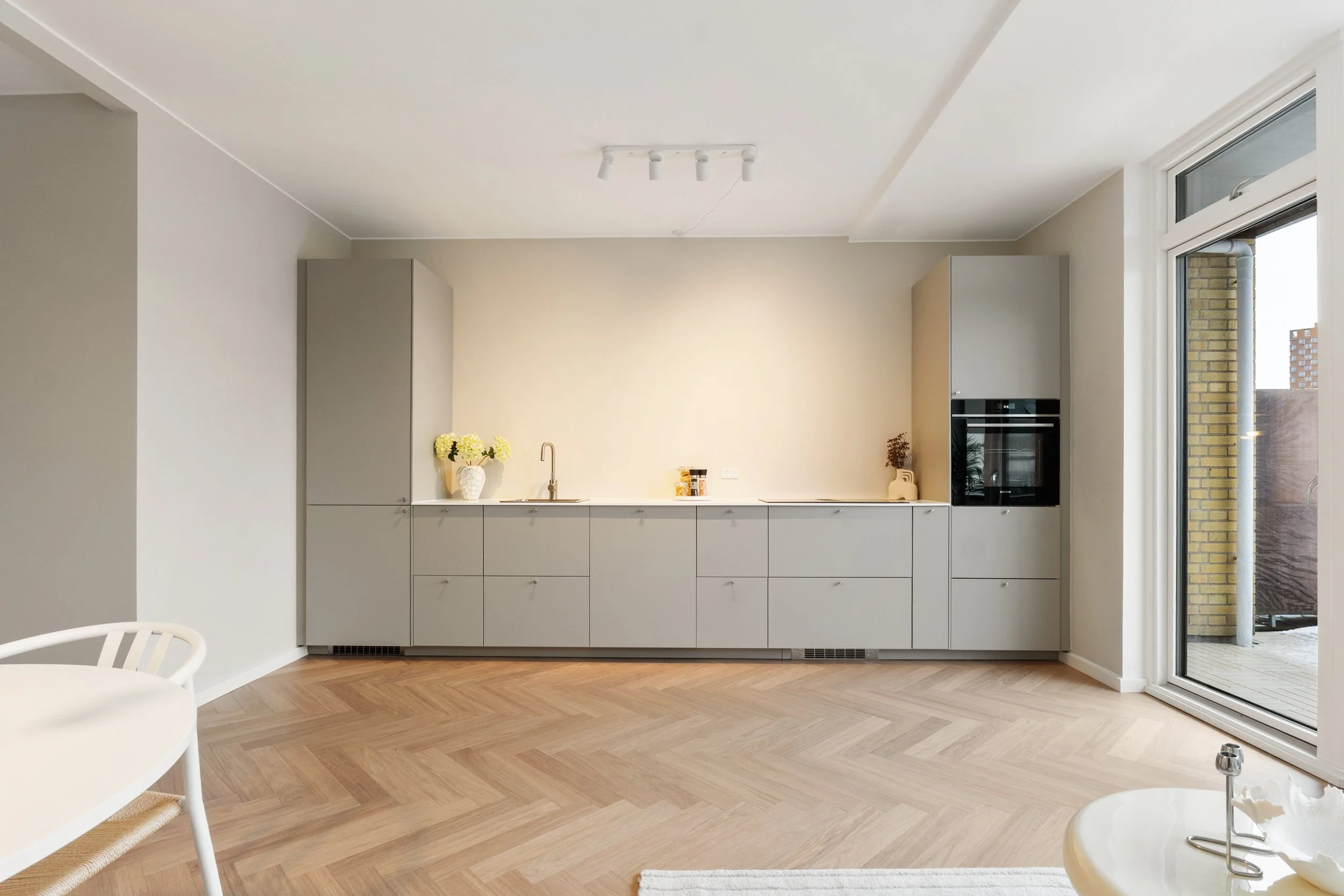 Komplet renovering af lejlighed – nyt køkken og egetræsgulvTerrasse i lærketræ.Nye radiatorskjulere. Inddeling af gang med skydedøre. Før og efter.Renovering af københavner badeværelse.Vinduesudskiftning og facadebeklædning.